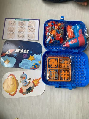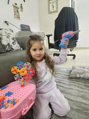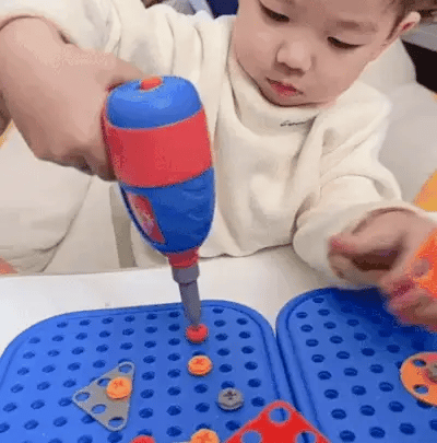 Let your child dive into imaginative play with colorful screws, design cards, and a kid-friendly drill. Each piece encourages creativity and hands-on learning, allowing kids to build 2D and 3D structures, enhancing their artistic and problem-solving skills.